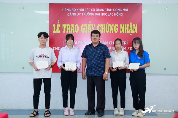 Sáng ngày 17/6/2022, Tại phòng E202, cơ sở 3, Đảng uỷ trường đã tổ chức Lễ trao Giấy chứng nhận Lớp bồi dưỡng lý luận chính trị dành cho đối tượng phát triển Đảng 2022 cho 63 đoàn viên, công đoàn viên tại trường.