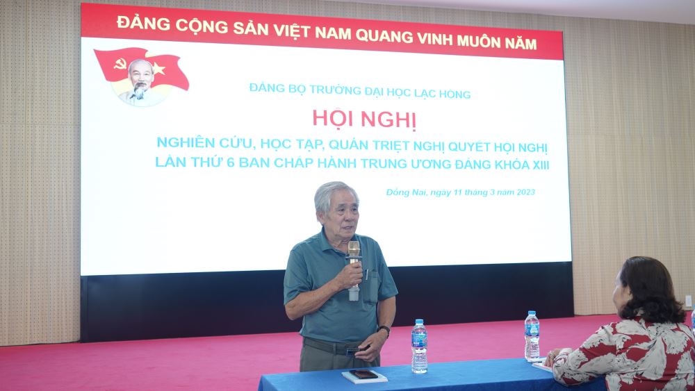 Sáng 11/3/2023 tại phòng A301, Cơ sở 1, Đảng ủy Trường Đại học Lạc Hồng đã tổ chức Hội nghị học  tập, quán triệt và triển khai Nghị quyết Hội nghị lần thứ sáu BCH TW Đảng khóa XIII.