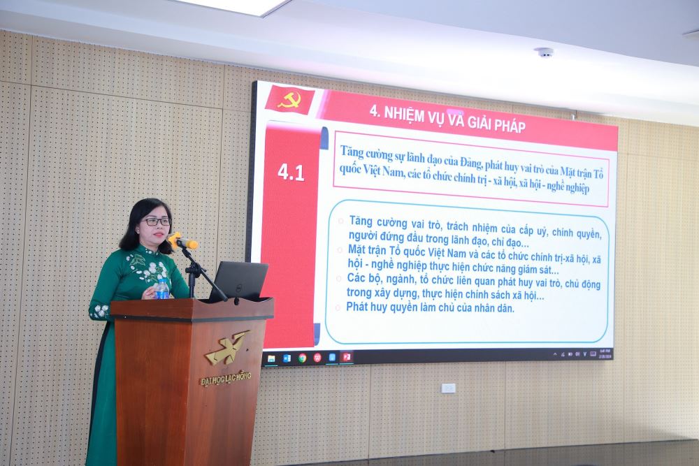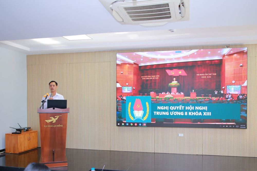 Sáng ngày 28/02/2024 tại Hội trường B203 Trường Đại học Lạc Hồng, Đảng ủy trường đã tổ chức Hội nghị học tập, quán triệt và triển khai thực hiện Nghị quyết Hội nghị Trung ương 8, khóa XIII.