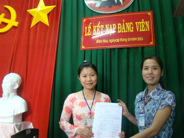 Quần chúng Mai Nguyễn Thùy Linh là một đoàn viên gương mẫu trong học tập cũng như trong rèn luyện. …với những thành tích đã đạt được, quần chúng Mai Nguyễn Thùy Linh đã vinh dự được tham gia học lớp đối tượng Đảng và được Đảng ủy trường thông qua hồ sơ và triển khai xác minh lý lịch. Hôm nay được đứng vào hàng ngũ Đảng là cả một sự cố gắng phấn đấu của quần chúng Mai Nguyễn Thùy Linh. Sau khi quần chúng Mai Nguyễn Thùy Linh đọc đơn xin vào Đảng và đồng chí Trần Thanh Tuấn (chi bộ 6) trình bày sự giới thiệu của mình, đ/c Nguyễn Thị Khang thay mặt Chi bộ đọc và trao Quyết định kết nạp Đảng của Đảng ủy Khối Dân chính Đảng đối với quần chúng Mai Nguyễn Thùy Linh. Cũng tại lễ kết nạp, đ/c Lê Sơn Quang – Uỷ viên Ban Thường vụ Đảng ủy trường đã thay mặt Đảng ủy trường chúc mừng và phát biểu ý kiến chỉ đạo. Đến dự lễ kết nạp, về phía Đảng ủy trường có đồng chí đồng chí Lê Sơn Quang – UV. BTV Đảng ủy trường; về phía Chi bộ 6 có đồng chí Nguyễn Thị Khang – Bí thư Chi bộ và toàn thể đảng viên chi bộ 6.