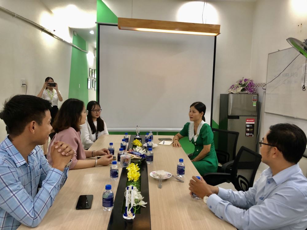 Ngoài ra, hai bạn Phạm Thị Kim Oanh và Phạm Thị Thanh Nhân cùng là sinh viên năm cuối chuyên ngành Hàn Quốc học đang thực tập tại công ty cũng có mặt trong buổi trò chuyện. Tại đây các bạn được ứng dụng kiến thức đã được học vào công việc triệt để. Cụ thể, đối với bạn Kim Oanh đang là giáo viên đứng lớp giảng dạy tiếng Hàn cho học viên chuẩn bị du học Hàn Quốc. Bạn Thanh Nhân đang là chuyên viên Chăm sóc khách hàng cùng các công việc kiểm tra, hướng dẫn hồ sơ du học... Ngoài ra, các bạn còn được tham gia các buổi tư vấn trực tiếp tại các trường THPT để rèn luyện kỹ năng thực chiến tốt hơn.