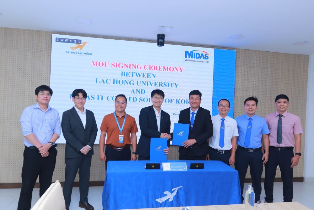 Ngày 08.5.2024 Trường Đại học Lạc Hồng đã có buổi ký kết bản ghi nhớ hợp tác (MOU) với Công ty Midas IT – Hàn Quốc, buổi ký kết được đánh giá là một sự kiện quan trọng, trong thời kỳ hợp tác kết nối với các doanh nghiệp nước ngoài, mang đến cho sinh viên trường Đại học Lạc Hồng nói chung và sinh viên ngành xây dựng nói riêng một giá trị thiết thực.