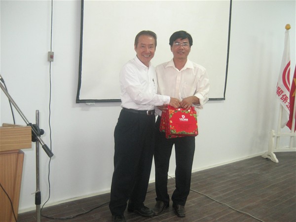 Ths.Trần Dũng gửi đến Phó tổng giám đốc công ty Vedan món quà lưu niệm và lời cám ơn chân thành