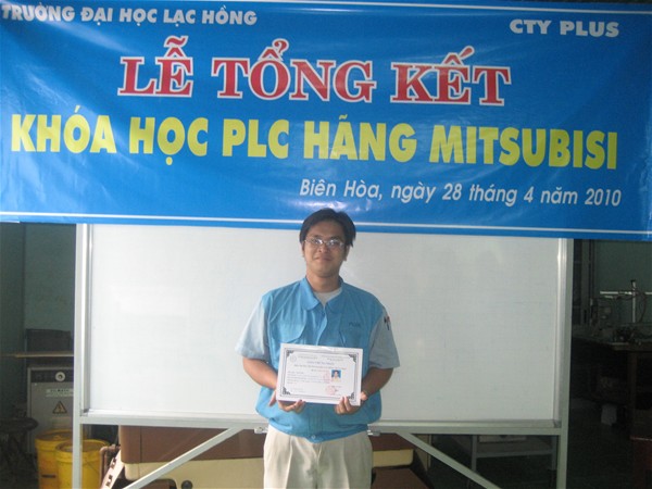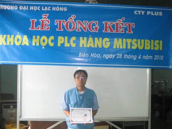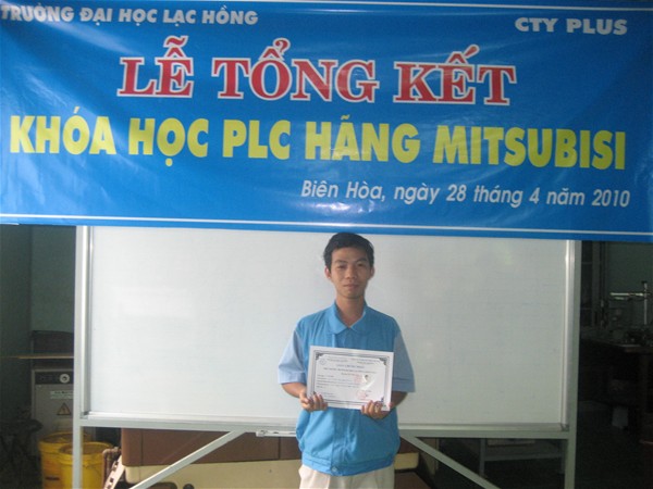 Chiều cùng ngày, Trường Đại học Lạc Hồng đã tổ chức lễ tổng kết khóa đào tạo chuyên đề lập trình PLC cho 06 kỹ sư của Công ty TNHH Công nghiệp PLUS VN. Đây là khóa học lập trình PLC của hãng Mitsubishi mà các kỹ sư thực hành theo yêu cầu phát triển công nghệ của Công ty. Sau khóa học giáo viên cùng 06 kỹ sư bắt tay tìm hiểu và phát triển dây chuyền tại phòng nghiên cứu của Công ty TNHH Công nghiệp PLUS VN.