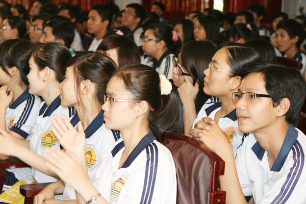 Trong chương trình tư vấn tuyển sinh này, TS Trần Hành cũng trao suất học bổng 10 triệu đồng cho các em học sinh trường THPT Ngô Quyền.