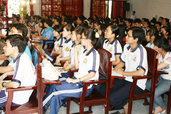 Các em học sinh trường THPT Ngô Quyền tham gia buổi tư vấn trực tiếp