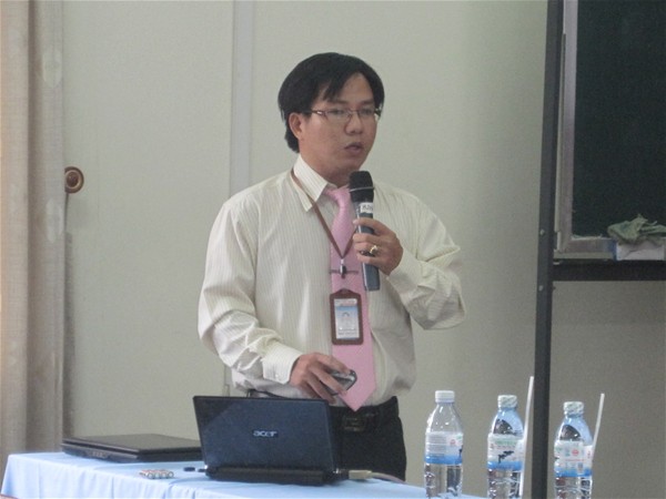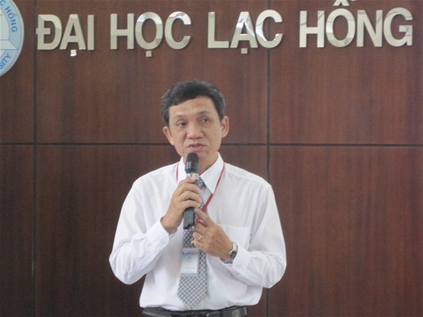 TS Nguyễn Văn Nam, Trưởng khoa Quản trị - Kinh tế quốc tế trao đổi trước khi buổi báo cáo bắt đầu