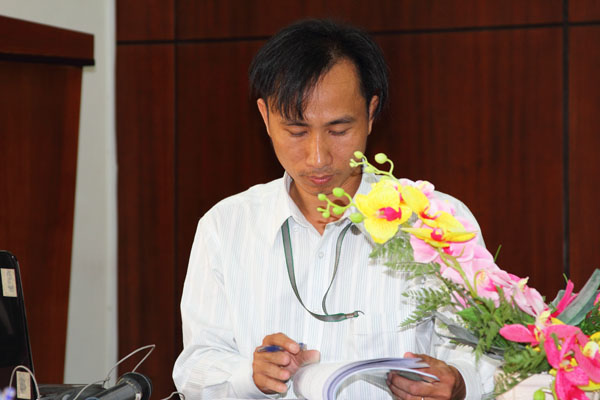 Thầy Trần Văn Quyền và thầy Đoàn Việt Hùng ghi nhận những ý kiến nhận xét của hội đồng thẩm định để hoàn thiện bài giảng