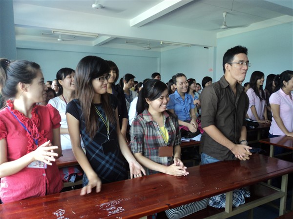 Nhằm tạo cơ hội cho sinh vên phát triển kỹ năng giao tiếp, củng cố kiến thức chuyên môn, đồng thời nâng cao sự tự tin trước đám đông, vào lúc 8 giờ ngày 05 tháng 11 năm 2011, tại phòng E306, Khoa Ngoại Ngữ đã tổ chức buổi sinh hoạt Speaking Club đầu tiên trong năm học 2011-2012, thu hút sự tham gia của đông đảo các bạn sinh viên đến từ các khóa. Tại đây, các bạn đã nhiệt tình tham gia vào các hoạt động của chương trình, đóng góp các tiết mục văn nghệ và nhận về những phần quà do chính tay quý thầy cô Khoa Ngoại Ngữ chuẩn bị. Trong thời gian tới, Khoa sẽ duy trì việc tổ chức Speaking Club theo định kỳ 2 tuần 1 lần vào sáng thứ 7. Sau đây là một số hình ảnh: