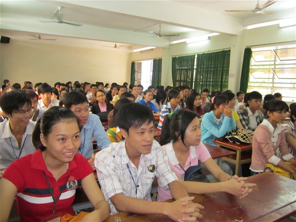 Các sinh viên tập trung để nghe phổ biến luật trước khi thi