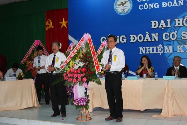 Ông Nguyễn Trùng Phương - Bí thư Đảng uỷ trường Đại học Lạc Hồng chúc mừng BCH Công đoàn khoá mới và chúc cho hoạt động Công đoàn trường Lạc Hồng phát triển mạnh hơn nữa trong nhiệm kỳ này