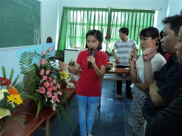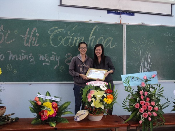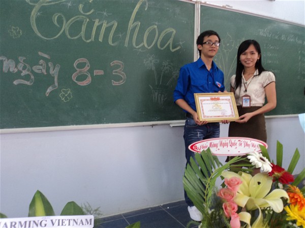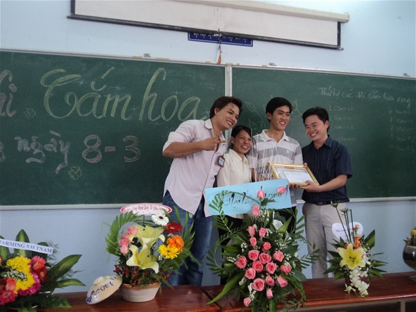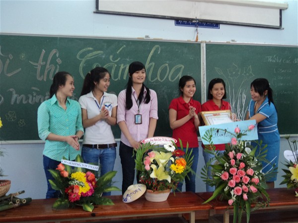 Cô Phạm Thị Nghĩa trao giải nhất cho đội thi xuất sắc...chi đoàn 10AV111