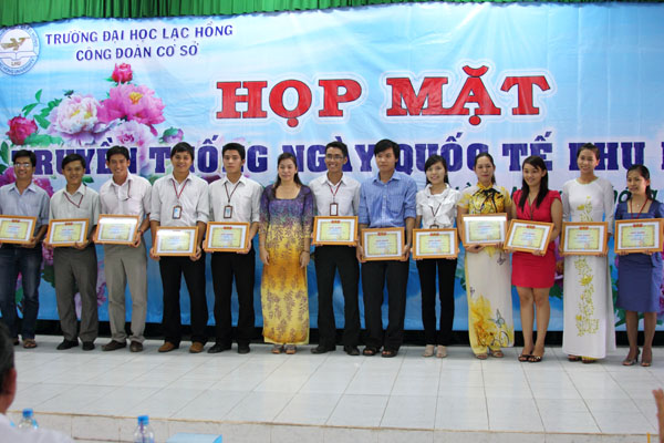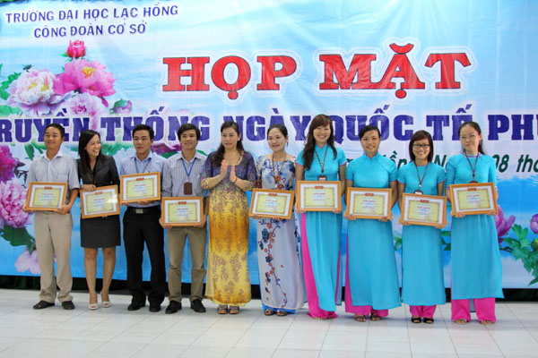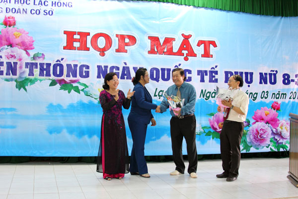 Sau khi Ths Diệp Cẩm Thu phát biểu khai mạc buổi họp mặt, cô Hồ Thị Hải Yến – Trưởng Ban nữ công đã báo cáo công tác nữ công trường Đại học Lạc Hồng năm 2011 và phổ biến những hoạt động chính của công tác nữ công năm 2012. Cũng tại buổi họp mặt, Đảng uỷ, Ban giám hiệu và Chi đoàn cơ quan đã tặng hoa, quà cho đại diện cán bộ, giảng viên nữ trong trường. Sự quan tâm, chăm lo đời sống cho cán bộ giảng viên, nhân viên đặc biệt là những cán bộ, giảng viên, nhân viên nữ của lãnh đạo trường Đại học Lạc Hồng được thể hiện trong rất nhiều lĩnh vực. Điều đó góp phần không nhỏ khích lệ chị em vừa hoàn thành tốt công tác chuyên môn vừa đảm đang việc nhà, nuôi dạy con cái. Rất nhiều cán bộ, giảng viên, nhân viên nữ của trường được tuyên dương và nhận bằng khen của Công đoàn ngành Giáo dục hàng năm.
