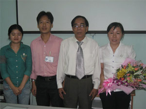 Sinh viên Khoa CNH - TP chụp hình lưu niệm với thầy.