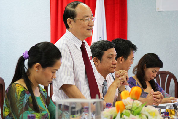Thầy Diệp Cẩm Thu - Chủ tịch Công đoàn trường báo cáo toàn diện về hoạt động công đoàn trường Đại học Lạc Hồng