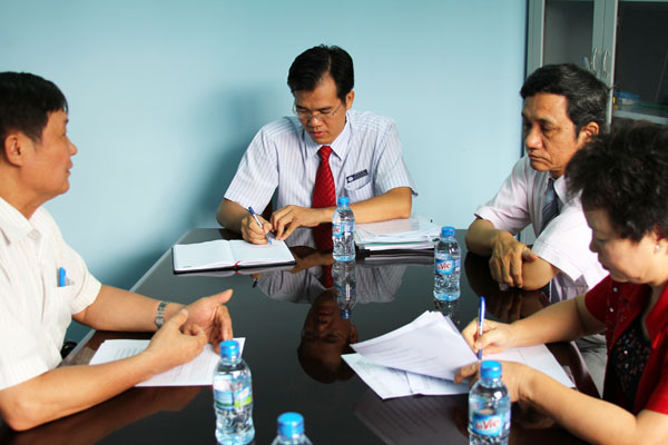 Các thành viên trong Ban chấp hành Công đoàn báo cáo sơ bộ công tác thực hiện điều lệ Công đoàn giáo dục Việt Nam và những thành tích đạt được trong các năm học trước đây