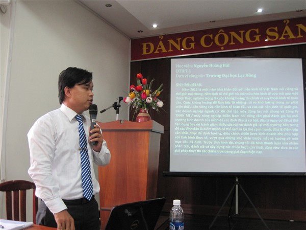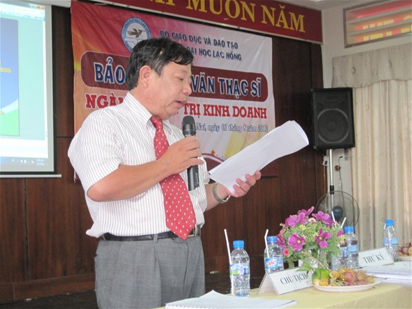 Sáng ngày 01/8/2012, Trường Đại học Lạc Hồng tổ chức buổi bảo vệ luận văn thạc sĩ cho các học viên cao học ngành Quản trị kinh doanh. Tham dự buổi bảo vệ có TS Nguyễn Văn Tân - Trưởng phòng Nghiên cứu khoa học - Sau đại học - Kiểm định chất lượng và các thầy cô trong hội đồng, cùng các học viên lớp cao học ngành Quản trị kinh doanh khóa 1, khóa 2 và khóa 3. Trước khi buổi bảo vệ bắt đầu, TS Nguyễn Văn Tân đã trao đổi và phổ biến cách thức làm việc của hội đồng chấm luận văn thạc sĩ ngày hôm nay.