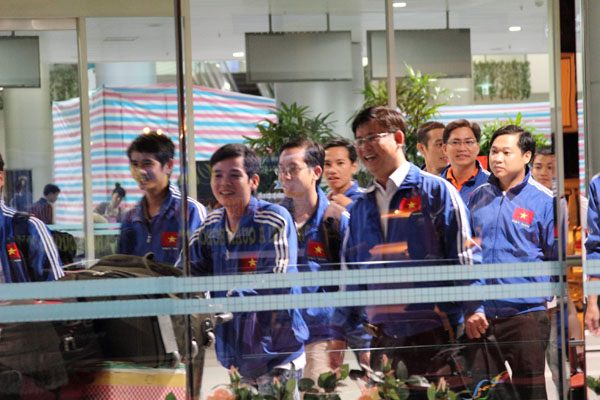 Chính vì thế, khi biết thông tin đoàn thi đấu hạ cánh xuống sân bay Tân Sơn Nhất lúc 12h đêm thứ ba ngày 21/8/2012, nhiều thầy cô và các bạn sinh viên đã đăng ký đi đón đoàn không kể sự bất tiện về thời gian.