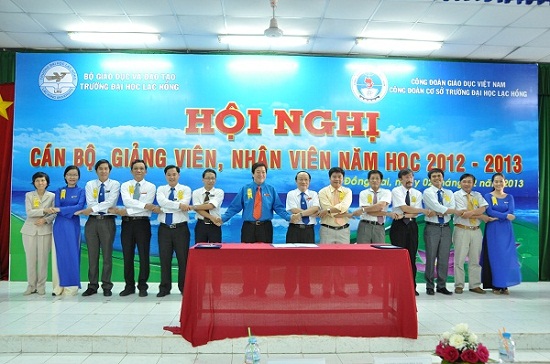 Sáng ngày 02/02/2013 tại khán phòng A.301(CS1-ĐHLH) đã diễn ra hội nghị CB,GV,NV năm học 2012-2013. Tham gia hội nghị có sự hiện diện của NGƯT Nguyễn Minh Đáng - Ủy viên thường vụ Công đoàn Giáo dục Việt Nam, Trưởng đại diện văn phòng Công đoàn Giáo dục phía Nam. Về phía nhà trường có Ông Nguyễn Trùng Phương – Bí thư Đảng ủy; NGND.TS Đỗ Hữu Tài – Chủ tịch HĐQT, Hiệu trưởng nhà trường; TS. Diệp Cẩm Thu – Chủ tịch Công đoàn; cùng quý ông bà trong HĐQT và quý thầy cô trong BLĐ nhà trường.