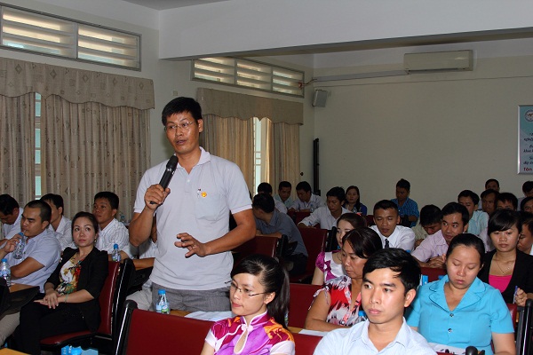Anh Lê Hữu Nghĩa - Phó Cục trưởng Chi cục Thuế Biên Hòa, CSV (Khóa 97- 02) lớp TC3, hiện là học viên Cao học khóa 4 của nhà trường cùng đóng góp thảo luận