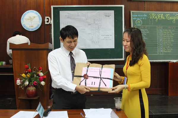 Đại diện cán bộ phòng thi kiểm tra độ bảo mật của đề thi