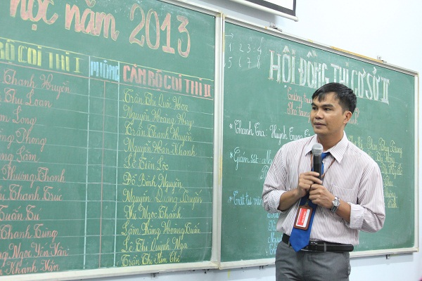 Trong khi cán bộ phòng thi thực hiện bài bản đúng tác phong đã được chỉ đạo và tập huấn trước đó. Đúng thời gian biểu, cán bộ coi thi gọi tên và kiểm tra xác nhận thông tin chính xác của thí sinh, đồng thời nhắc nhở thí sinh về những hình thức xử lý vi phạm theo quy chế. Bên ngoài khu vực phòng thi, công tác giám sát và thanh tra được phối hợp chặt chẽ, nghiêm túc.