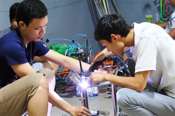 Sinh viên thực hiện phần cơ khí để tạo thành bộ khung cho robot