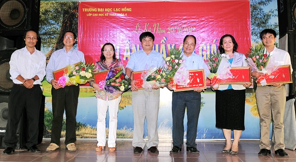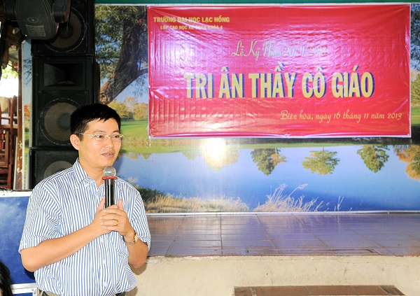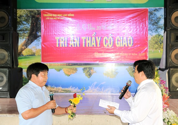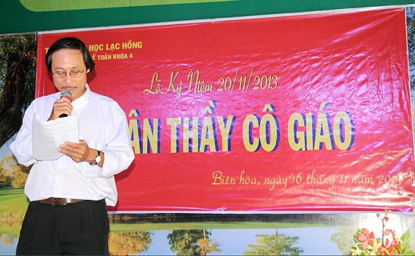 Trưa ngày 16/11/2013, Tập thể lớp Cao học Kế toán 4 đã trân trọng tổ chức Lễ tri ân ngày Nhà giáo Việt Nam 20/11. Chương trình được diễn ra tại sảnh của Nhà hàng Đồng Quê (Đường Võ Thị Sáu – TP. Biên Hòa – Đồng Nai). Tham dự lễ tri ân, về phía nhà trường có sự hiện diện của TS. Nguyễn Văn Tân – Trường phòng Sau ĐH – Trưởng Khoa QTKTQT; ThS. Lê Thu Thủy – Phó trưởng phòng Sau ĐH; TS. Huỳnh Đức Lộng – Trưởng khoa KTKT; ThS. Lê Đức Thịnh – Trưởng khoa Anh văn Đại cương; cùng quý thầy cô thỉnh giảng tại khóa học.