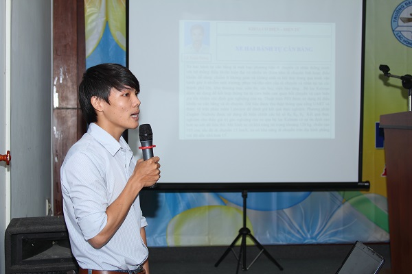 Cũng tại phiên toàn thể, tác giả Lê Xuân Hưng – Khoa Cơ điện Điện tử đã có mở đầu thành công với đề tài: “Xe hai bánh tự cần bằng” - hướng dẫn Ths. Lê Hoàng Anh. Đề tài nhận được nhiều khen tặng và góp ý tích cực của hội đồng. Đúng 9h00, các tiểu ban đồng loạt tiến hành báo cáo. Mong rằng, thành công của hội nghị sẽ khép lại năm 2013 nhiều ý nghĩa.