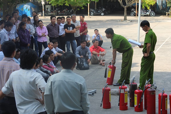 Đầu giờ chiều, gần 100 CB, GV, NV trong danh sách phân bổ của các đơn vị (mỗi đơn vị 5 đối tượng) đã tập kết tại sân cs2 để bắt đầu phần thực hành. Cạnh đó bộ phận tự quản và đội PCCC của Khu Nội trú sinh viên luôn tích cực có mặt trong các chương trình tập huấn của mọi năm.