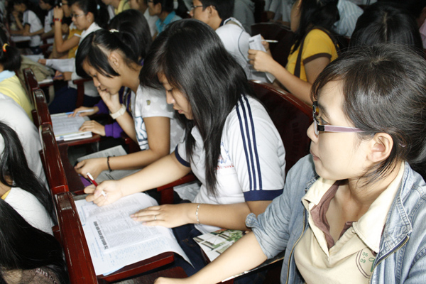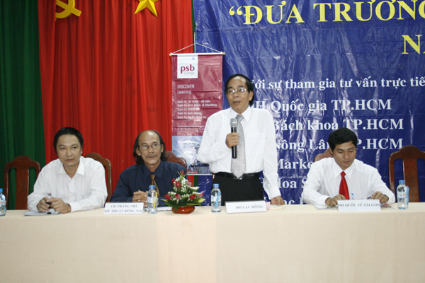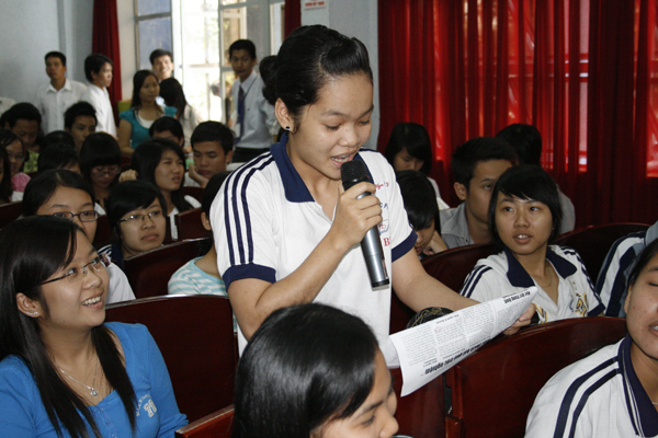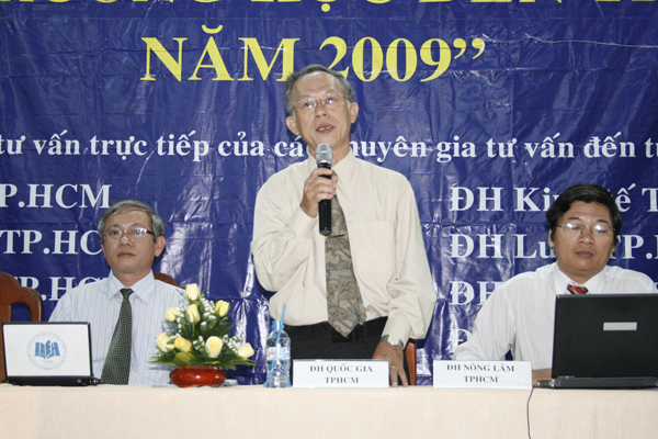 Tiếp đó TS Nguyễn Kim Quang – Trưởng phòng đào tạo trường Đại học Khoa học Tự nhiên TP HCM giới thiệu cho các bạn học sinh biết những thông tin mới, những điểm cần lưu ý về chương trình tuyển sinh năm 2009. Sôi nổi và thu hút hơn cả là phần các bạn học sinh trực tiếp đặt câu hỏi với những trường mà các em quan tâm. Phần lớn câu hỏi của các em đều hướng đến việc làm rõ những ngành nghề đào tạo như Quản trị kinh doanh, Thiết kế thời trang, Công nghệ thông tin, Đông phương…(Có những ngành nào? Ra trường làm được những việc gì? Ở đâu?...). Nhiều câu hỏi về trường Đại học Lạc Hồng của các bạn học sinh được TS Trần Hành trả lời rõ ràng và khá thú vị mang lại không khí sôi nổi cho buổi tư vấn.