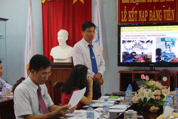 Tiếp đoàn có NGND.TS Đỗ Hữu Tài – Hiệu trưởng; ThS. Lâm Thành Hiển – Phó Hiệu trưởng; cùng Lãnh đạo Phòng Đào tạo; Trung tâm QHDN & HTSV; và Khoa Cơ điện – Điện tử. Dẫn đầu đoàn Nhật Bản là PGS.Tomoharu Doi – Chuyên gia trong lĩnh vực CNTT và Điện tử ĐH Osaka Nhật Bản; Bà Emiko Setoguchi – Tổng GĐ bộ phận Quốc tế Trung tâm trao đổi tài nguyên Thái Bình Dương (PREX); cùng các giáo sư tại các trường đại học, cao đẳng của Nhật Bản; đại diện các sở, ban, ngành của Nhật Bản và Ông Nguyễn Hữu Đức – Thành viên Bàn Kansai – Ban QL các KCN Tỉnh Đồng Nai
