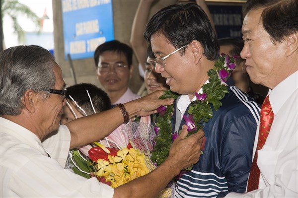 Đ/c Nguyễn Thành Trí thay mặt BLĐ Tỉnh tặng hoa và phát biểu chúc mừng thành công