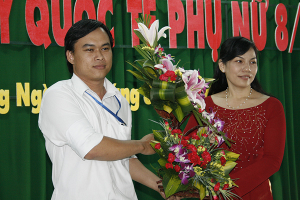 ...và tặng hoa cho đại diện nữ cán bộ trong trường.