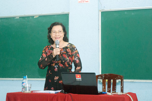 NGƯT.TS Nguyễn Thị Thu Lan - Phó Hiệu trưởng thu hút tân sinh viên vào chuyên đề của mình