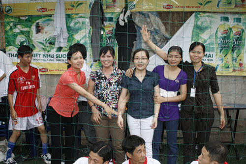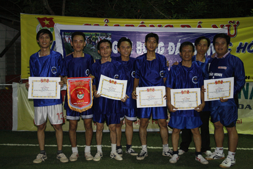 Dù rất mệt sau trận đấu nhưng các cầu thủ khoa Kinh tế vẫn rất vui khi nhận giải Nhì
