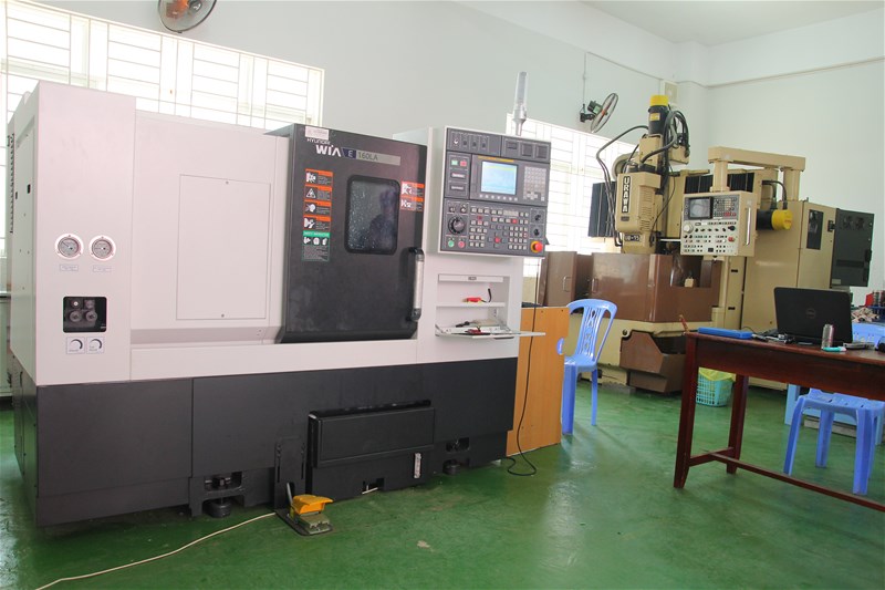 Với tiêu chí “đào tạo theo hướng ứng dụng”, các phòng thực hành phục vụ cho đào tạo và nghiên cứu được trang bị đầy đủ máy, trang thiết bị hiện đại đảm bảo đáp ứng các yêu cầu của nhà tuyển dụng. Năm học 2014-2015 Nhà trường đã đầu tư, nâng cấp và hoàn thiện các phòng thực hành của Khoa với tổng giá trị hơn 2,5 tỷ đồng. Trong đó phòng Đo lường - Cảm biến, Điện tử cơ bản, Kỹ thuật số, Điện cơ bản đã được đầu tư trang thiết bị mới hoàn toàn. Qua đó, giúp sinh viên sau khi ra trường nhanh chóng hoà nhập với môi trường công nghiệp. Bên cạnh đó các phòng thực hành khác cũng đã được nâng cấp thêm các thiết bị hiện đại phục vụ nhu cầu thực tế. Nổi bật trong năm 2015, Khoa được Nhà trường đầu tư máy CNC thế hệ mới với giá trị trên 1,5 tỷ đồng. Đây là cơ hội lớn giúp sinh viên có điều kiện thực tập CNC trên thiết bị hiện đại. Các phòng thực hành của khoa đang đầu tư xây dựng theo tiêu chuẩn 5S. Từ đó, tạo cơ hội để sinh viên được thực tập trong môi trường học tập hiệu quả, có chất lượng và an toàn. Khoa luôn tập trung vào việc nâng cao chất lượng thực hành nhằm giúp sinh viên rèn luyện kỹ năng thực hành, vận dụng kiến thức lý thuyết vào thực tế. Vì vậy, thời gian học tại các phòng thực hành là trên 50% tổng số thời gian của chương trình học.
