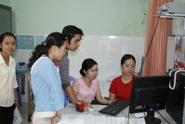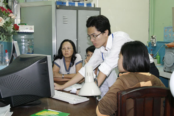 Nhân viên trường ĐH Lạc Hồng hướng dẫn các bác sĩ chạy thử chương trình