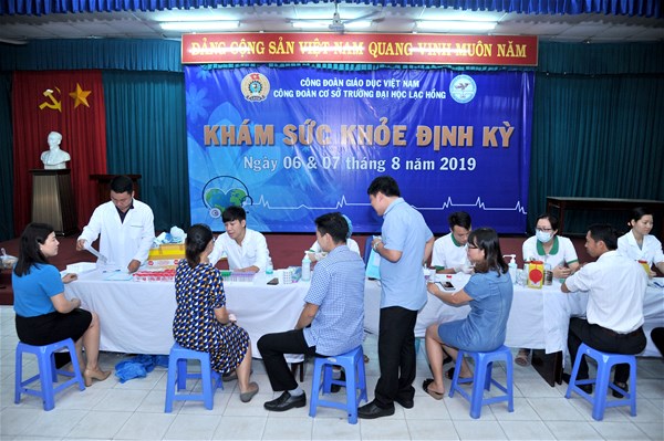 Việc tổ chức khám sức khỏe định kỳ cho Cán bộ công nhân viên được Trường Đại học Lạc Hồng phối hợp cùng với đoàn bác sĩ thực hiện theo đúng quy trình, tiêu chuẩn của Bộ y tế: kiểm tra cân nặng, đo huyết áp, xét nghiệm máu, xét nghiệm nước tiểu, thăm khám các chức năng cơ thể dễ bị ảnh hưởng trong nghề nghiệp như kiểm tra tuyến giáp, phổi, thị giác, ….