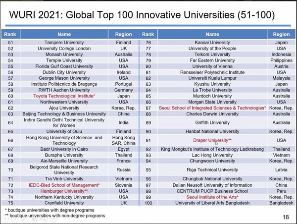 Vào top 100 trường đại học sáng tạo toàn cầu