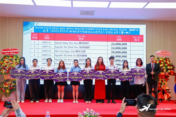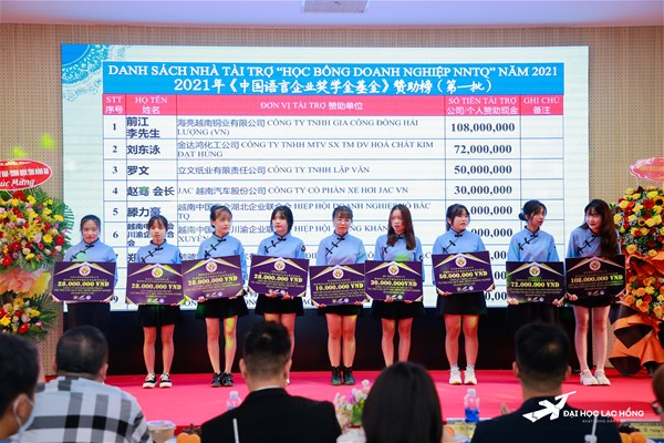 Những năm qua, ngành Ngôn ngữ Trung Quốc, Đại học Lạc Hồng luôn thấu hiểu và đồng cảm với những hoàn cảnh gia đình khó khăn của các bạn sinh viên có thành tích học tập tốt, hoạt động tốt do đại dịch Covid – 19 tác động. Ngành ngôn ngữ Trung Quốc, Đại học Lạc Hồng đã vận động được nhiều công ty tài trợ học bổng cho sinh viên cụ thể lần này đã có 78 doanh nghiệp tài trợ học bổng cho sinh viên với số tiền trên 1,1 tỉ đồng. Trong đó, ngành Ngôn ngữ Trung đã cấp 870 triệu đồng cho sinh viên còn lại 294 triệu đồng thuộc Quỹ học bổng của ngành để tiếp tục hỗ trợ cho các bạn sinh viên trong thời gian tới.
