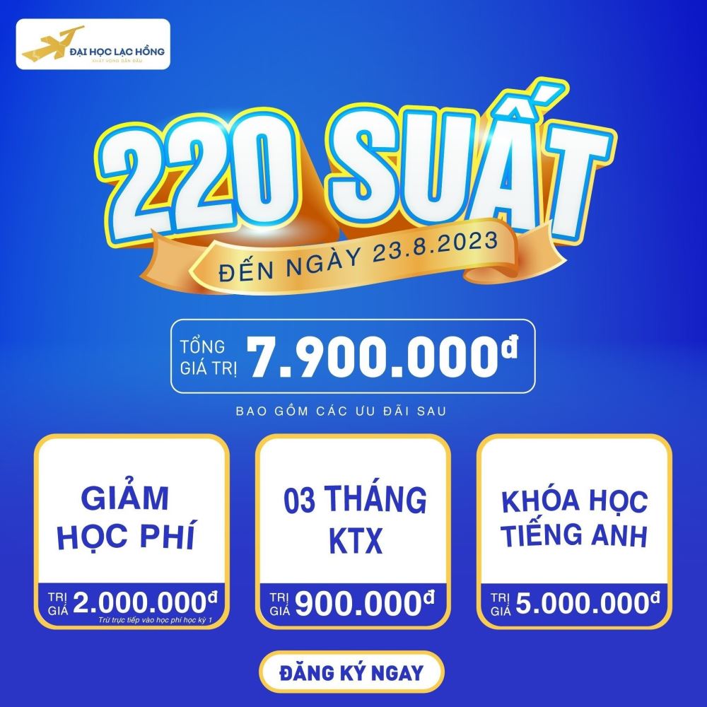 Còn chần chừ gì không đăng ký nhập học trực tuyến TẠI ĐÂY để nhận ngay những ưu đãi cực kỳ hấp dẫn tại Đại học Lạc Hồng.