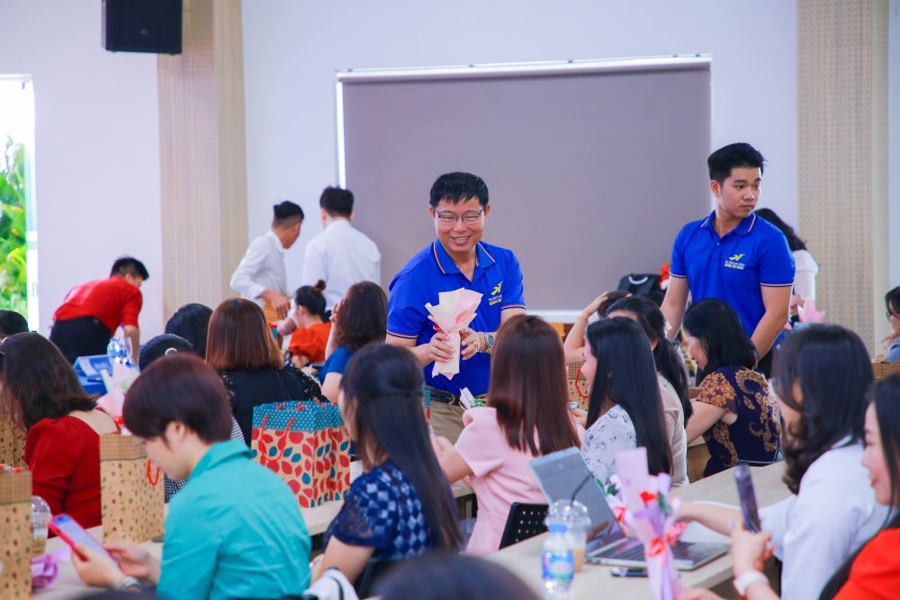 Quý thầy tặng hoa chúc mừng tới quý cô trong Nhà trường