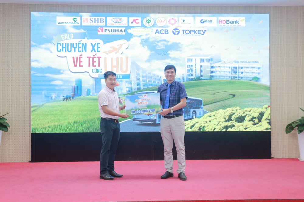 Đại diện Công ty TNHH SX TM DV An Chi trao tài trợ cho Chương trình Chuyến xe về Tết LHU 2025