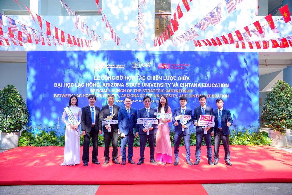 Đồng Nai, ngày 12 tháng 3 năm 2025 – Trường Đại học Lạc Hồng (LHU) chính thức ghi dấu một bước ngoặt quan trọng trên hành trình hội nhập quốc tế khi công bố hợp tác chiến lược toàn diện với Arizona State University (ASU) và Cintana Education. Sự kiện diễn ra tại hội trường A301, cơ sở 1, không chỉ đánh dấu bước chuyển mình mạnh mẽ của LHU theo định hướng LHU 2.0 mà còn mở ra cơ hội bứt phá về chất lượng đào tạo, nghiên cứu và hợp tác toàn cầu.