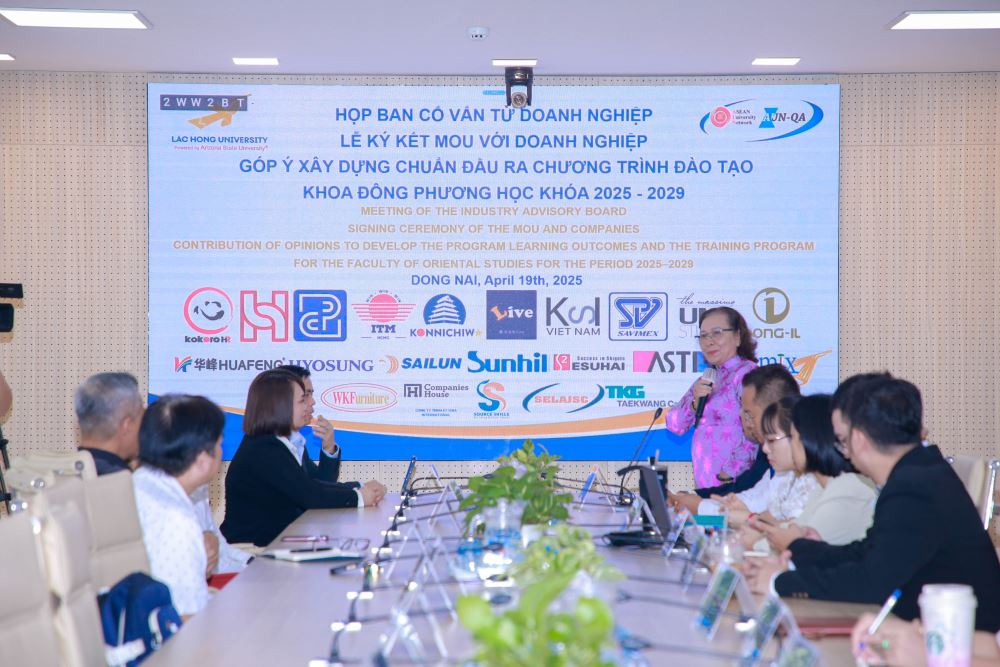 Đặc biệt, sự kiện càng thêm ý nghĩa khi tại phòng họp, Khoa Đông phương học đã ký kết biên bản ghi nhớ hợp tác (MOU) với các doanh nghiệp, đồng thời tổ chức hội thảo góp ý chương trình đào tạo. Đây chính là điểm giao thoa giữa lý thuyết và thực tiễn – khi nhà trường lắng nghe những phản hồi từ doanh nghiệp để điều chỉnh nội dung đào tạo, giúp sinh viên tiếp cận sát hơn với yêu cầu của thị trường lao động hiện nay.