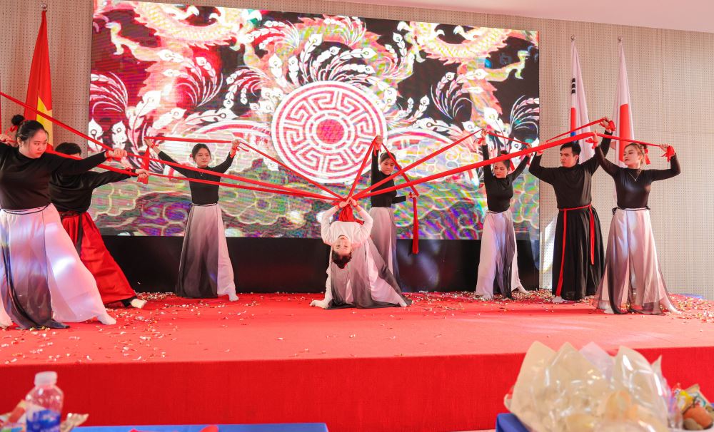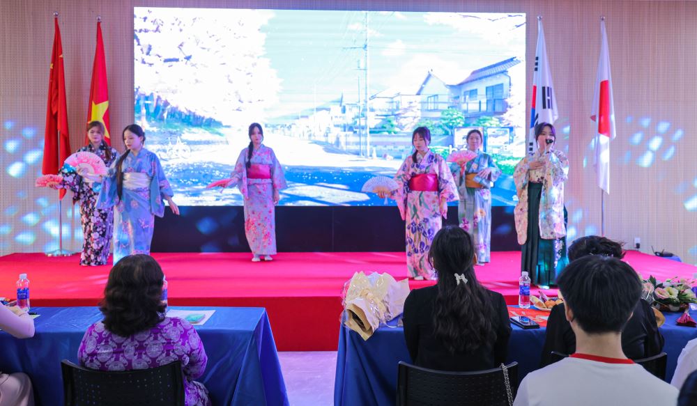 Sự kiện không đơn thuần là một ngày hội trải nghiệm, mà còn là một hoạt động giáo dục giá trị, nơi sinh viên có cơ hội được “sống trong văn hóa”, chạm đến tinh thần của Nhật Bản, Hàn Quốc và Trung Quốc thông qua những hoạt động như mặc trang phục truyền thống, viết thư pháp, thưởng thức ẩm thực đặc trưng và tham gia trò chơi dân gian. Không gian ấy không chỉ thu hút sinh viên trong trường mà còn mở rộng đến học sinh các trường THPT, cựu sinh viên và cả du học sinh quốc tế, tạo nên một sân chơi lành mạnh, gắn kết và mang tính giáo dục sâu sắc.