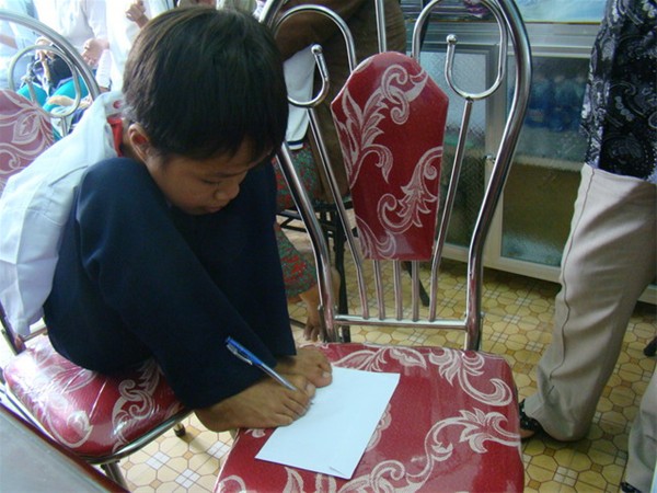 bằng đôi chân của mình (em bị khuyết tật cả hai tay)