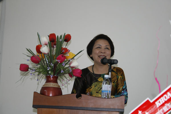 Cô Lê Thị Ngọc Hương - Phó trưởng Khoa Ngoại ngữ tặng hoa cho Ban Nữ công