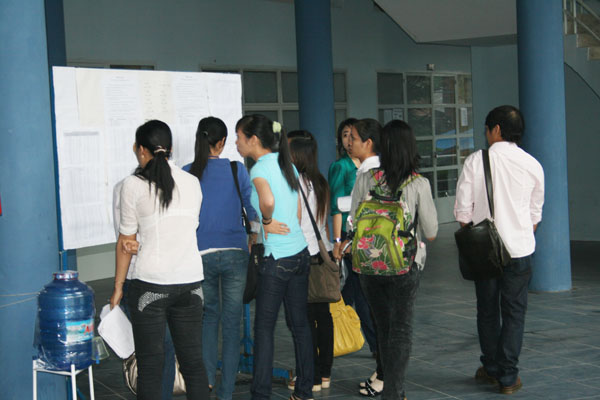 Sinh viên kiểm tra thông tin trên danh sách trước khi vào phòng thi